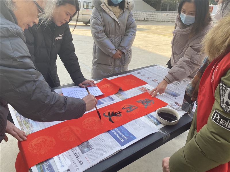 走進(jìn)社區(qū)送祝福。參與聯(lián)點(diǎn)共建昭亭社區(qū)“我們的節(jié)日·春節(jié)”新時(shí)代文明實(shí)踐志愿服務(wù)活動(dòng),以送春聯(lián)形式為社區(qū)居民送上新春祝福。活動(dòng)現(xiàn)場(chǎng),志愿者們忙前忙后傳遞紙墨,書(shū)法家們?cè)谝粡垙埣t紙上盡情地?fù)]毫潑墨,一個(gè)多小時(shí)的時(shí)間,書(shū)寫(xiě)春聯(lián)等上百副。一副副春聯(lián)給社區(qū)居民們送上了新春的祝福,一張張福字更是讓大家感受到濃濃的傳統(tǒng)年味。