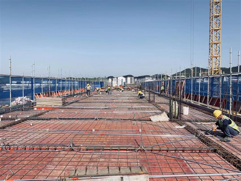 在高級(jí)技工學(xué)校項(xiàng)目現(xiàn)場,建筑工人們正在各自負(fù)責(zé)的區(qū)域緊張而有序地工作,有的負(fù)責(zé)綁扎鋼筋,有的負(fù)責(zé)混凝土澆筑,有的負(fù)責(zé)模板支架……各類機(jī)械作業(yè)聲轟鳴不斷,呈現(xiàn)出一片繁忙景象。