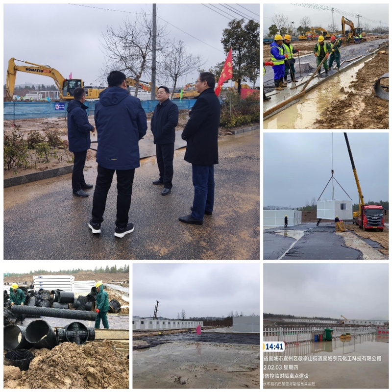 正月初三上午,區(qū)委副書記、區(qū)長(zhǎng)俞志剛到宣州區(qū)疫情防控臨時(shí)隔離點(diǎn)工地現(xiàn)場(chǎng)督導(dǎo)項(xiàng)目建設(shè),副區(qū)長(zhǎng)汪海洋陪同。俞志剛對(duì)項(xiàng)目建設(shè)速度給予充分肯定,向春節(jié)期間冒著雨雪天氣加班加點(diǎn)的項(xiàng)目建設(shè)者表示親切的慰問。上午,現(xiàn)場(chǎng)工人正在對(duì)路面沉降縫進(jìn)行切割、對(duì)積水較多區(qū)域進(jìn)行排水,為下一步吊裝工作做好準(zhǔn)備。截止目前,臨時(shí)隔離點(diǎn)北邊庫(kù)房、醫(yī)護(hù)辦公、醫(yī)護(hù)宿舍合計(jì)36套已吊裝結(jié)束,即將完成22套準(zhǔn)備區(qū)用房吊裝工作。
