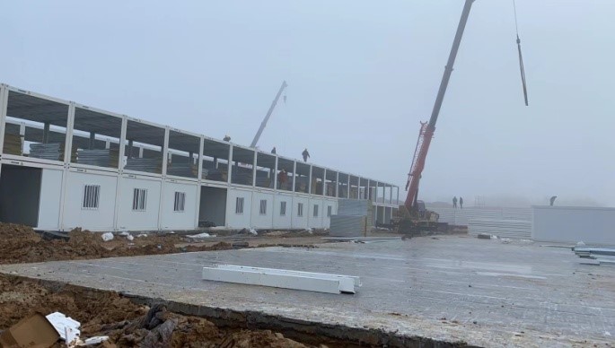 2月14日,宣州區(qū)疫情防控臨時(shí)隔離點(diǎn)項(xiàng)目現(xiàn)場(chǎng)機(jī)器聲轟鳴、腳步聲交響,新一天的施工作業(yè)從漫天大霧的清晨里井而有序的展開。